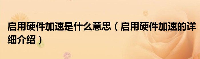 大家好,今天小悦来为大家解答以上问题。启用硬件加速是什么意思,启用硬件加速的详细介绍很多人还不知道,现在让我们一起来看看吧!
