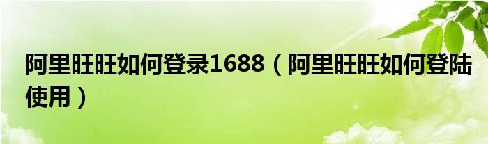 大家好,今天小悦来为大家解答以上问题。阿里旺旺如何登录1688,阿里旺旺如何登陆使用很多人还不知道,现在让我们一起来看看吧!