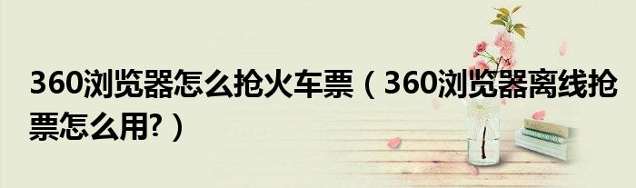 大家好,今天小悦来为大家解答以上问题。360浏览器怎么抢火车票,360浏览器离线抢票怎么用?很多人还不知道,现在让我们一起来看看吧!