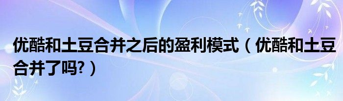 大家好,小太来为大家解答以上问题。优酷和土豆合并之后的盈利模式,优酷和土豆合并了吗?很多人还不知道,现在让我们一起来看看吧!