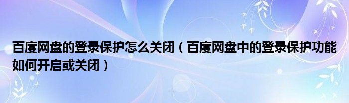大家好,今天小悦来为大家解答以上问题。百度网盘的登录保护怎么关闭,百度网盘中的登录保护功能如何开启或关闭很多人还不知道,现在让我们一起来看看吧!