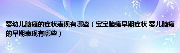 大家好,linda来为大家解答以上的问题。婴幼儿脑瘫的症状表现有哪些,宝宝脑瘫早期症状 婴儿脑瘫的早期表现有哪些很多人还不知道,现在让我们一起来看看吧!