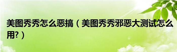 大家好,小太来为大家解答以上问题。美图秀秀怎么恶搞,美图秀秀邪恶大测试怎么用?很多人还不知道,现在让我们一起来看看吧!
