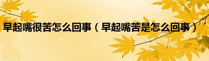 大家好,linda来为大家解答以上的问题。早起嘴很苦怎么回事,早起嘴苦是怎么回事很多人还不知道,现在让我们一起来看看吧!