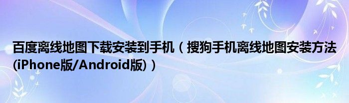 大家好,小太来为大家解答以上问题。百度离线地图下载安装到手机,搜狗手机离线地图安装方法(iPhone版/Android版)很多人还不知道,现在让我们一起来看看吧!