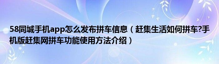 大家好,小太来为大家解答以上问题。58同城手机app怎么发布拼车信息,赶集生活如何拼车?手机版赶集网拼车功能使用方法介绍很多人还不知道,现在让我们一起来看看吧!