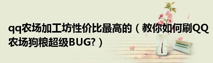 大家好,小太来为大家解答以上问题。qq农场加工坊性价比最高的,教你如何刷QQ农场狗粮超级BUG?很多人还不知道,现在让我们一起来看看吧!