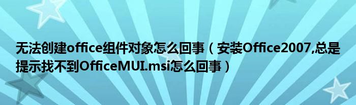 大家好,小太来为大家解答以上问题。无法创建office组件对象怎么回事,安装Office2007,总是提示找不到OfficeMUI.msi怎么回事很多人还不知道,现在让我们一起来看看吧!