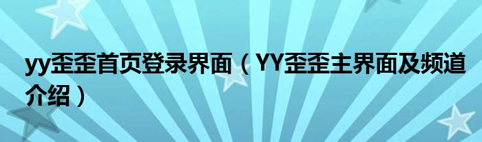 大家好,小太来为大家解答以上问题。yy歪歪首页登录界面,YY歪歪主界面及频道介绍很多人还不知道,现在让我们一起来看看吧!