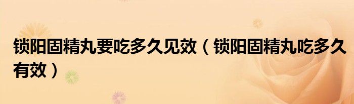 1、锁阳固精丸吃多久有效不能一概而论。需要根据具体病情来分析,具体时间不固定。