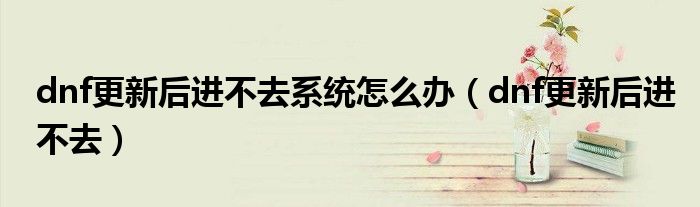 大家好,雨雨来为大家解答以上问题,dnf更新后进不去系统怎么办,dnf更新后进不去很多人还不知道,现在让我们一起来看看吧!