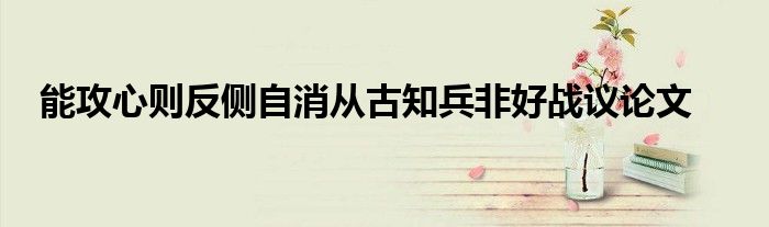 关于能攻心则反侧自消从古知兵非好战议论文这个很多人还不知道,今天菲菲来为大家解答以上的问题,现在让我们一起来看看吧!