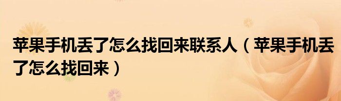 大家好,雨雨来为大家解答以上问题,苹果手机丢了怎么找回来联系人,苹果手机丢了怎么找回来很多人还不知道,现在让我们一起来看看吧!