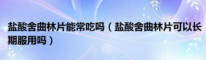 大家好,linda来为大家解答以上的问题。盐酸舍曲林片能常吃吗,盐酸舍曲林片可以长期服用吗很多人还不知道,现在让我们一起来看看吧!