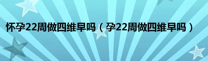 大家好,linda来为大家解答以上的问题。怀孕22周做四维早吗,孕22周做四维早吗很多人还不知道,现在让我们一起来看看吧!