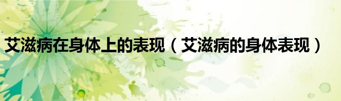 大家好,linda来为大家解答以上的问题。艾滋病在身体上的表现,艾滋病的身体表现很多人还不知道,现在让我们一起来看看吧!