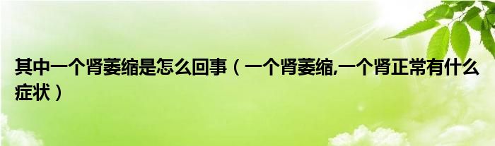 大家好,linda来为大家解答以上的问题。其中一个肾萎缩是怎么回事,一个肾萎缩,一个肾正常有什么症状很多人还不知道,现在让我们一起来看看吧!