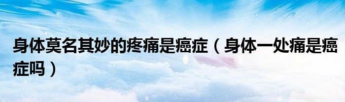 大家好,linda来为大家解答以上的问题。身体莫名其妙的疼痛是癌症,身体一处痛是癌症吗很多人还不知道,现在让我们一起来看看吧!