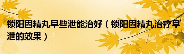 大家好,linda来为大家解答以上的问题。锁阳固精丸早些泄能治好,锁阳固精丸治疗早泄的效果很多人还不知道,现在让我们一起来看看吧!