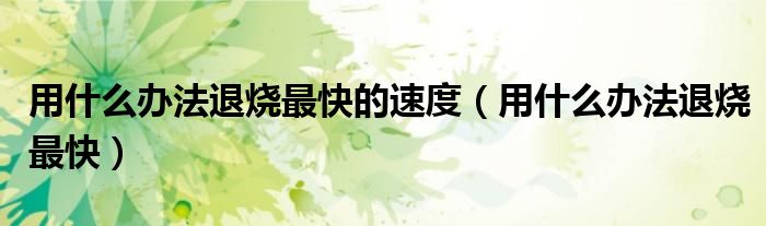 大家好,linda来为大家解答以上的问题。用什么办法退烧最快的速度,用什么办法退烧最快很多人还不知道,现在让我们一起来看看吧!