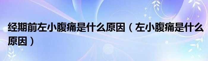 大家好,linda来为大家解答以上的问题。经期前左小腹痛是什么原因,左小腹痛是什么原因很多人还不知道,现在让我们一起来看看吧!
