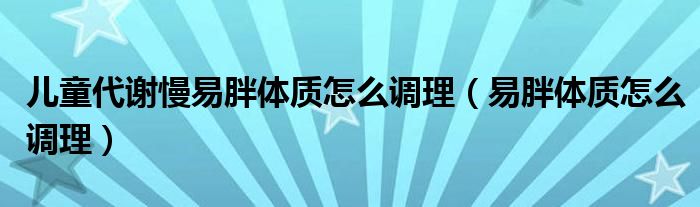 大家好,linda来为大家解答以上的问题。儿童代谢慢易胖体质怎么调理,易胖体质怎么调理很多人还不知道,现在让我们一起来看看吧!