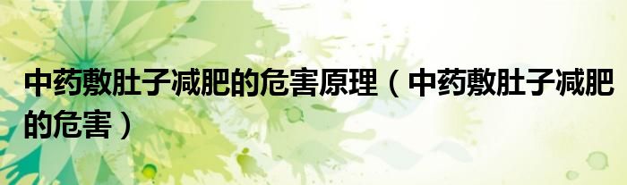 大家好,linda来为大家解答以上的问题。中药敷肚子减肥的危害原理,中药敷肚子减肥的危害很多人还不知道,现在让我们一起来看看吧!