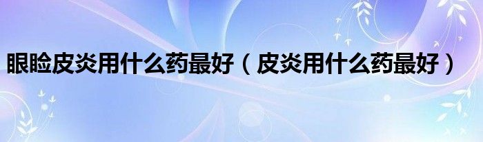 眼睑皮炎用什么药最好(皮炎用什么药最好)