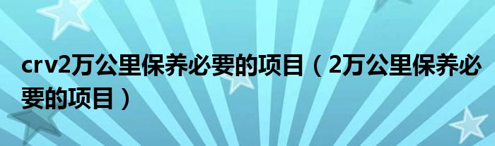 大家好,小晋来为大家解答以下问题,关于crv2万公里保养必要的项目,2万公里保养必要的项目很多人还不知道,今天让我们一起来看看吧!