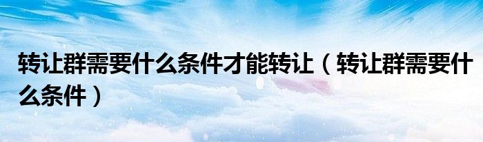 大家好,小晋来为大家解答以下问题,关于转让群需要什么条件才能转让,转让群需要什么条件很多人还不知道,今天让我们一起来看看吧!