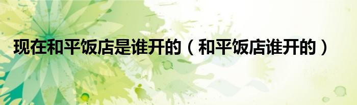 大家好,小晋来为大家解答以下问题,关于现在和平饭店是谁开的,和平饭店谁开的很多人还不知道,今天让我们一起来看看吧!