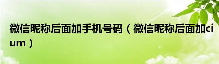 大家好,小晋来为大家解答以下问题,关于微信昵称后面加手机号码,微信昵称后面加cium很多人还不知道,今天让我们一起来看看吧!