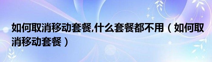 如何取消移动套餐,什么套餐都不用(如何取消移动套餐)