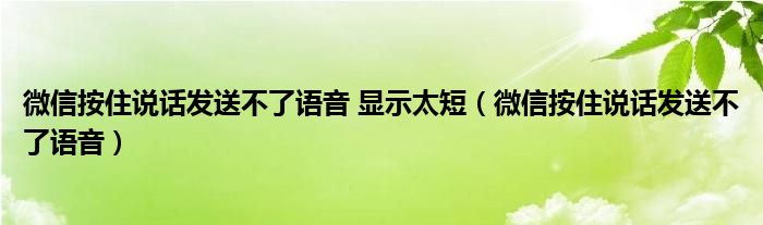 大家好,小晋来为大家解答以下问题,关于微信按住说话发送不了语音 显示太短,微信按住说话发送不了语音很多人还不知道,今天让我们一起来看看吧!