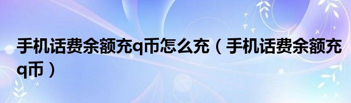 大家好,小晋来为大家解答以下问题,关于手机话费余额充q币怎么充,手机话费余额充q币很多人还不知道,今天让我们一起来看看吧!