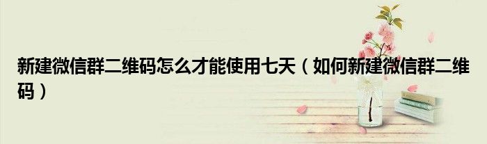 新建微信群二维码怎么才能使用七天(如何新建微信群二维码)