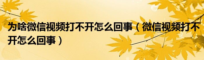 大家好,小晋来为大家解答以下问题,关于为啥微信视频打不开怎么回事,微信视频打不开怎么回事很多人还不知道,今天让我们一起来看看吧!