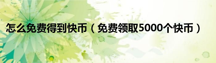 大家好,小晋来为大家解答以下问题,关于怎么免费得到快币,免费领取5000个快币很多人还不知道,今天让我们一起来看看吧!