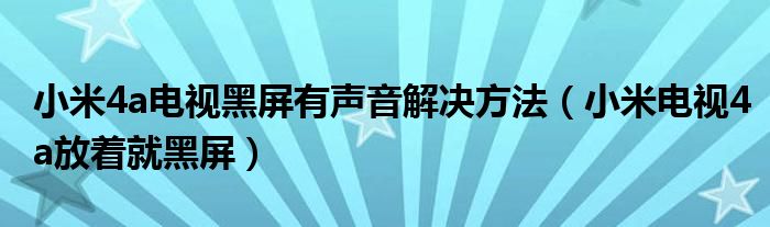 大家好,小叶为你解答以上问题。小米4a电视黑屏有声音解决方法,小米电视4a放着就黑屏这个问题很多人还不知道,现在让我们一起来看看吧!