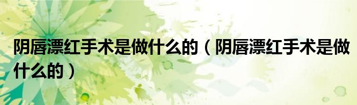 大家好,linda来为大家解答以上的问题。阴唇漂红手术是做什么的,阴唇漂红手术是做什么的很多人还不知道,现在让我们一起来看看吧!