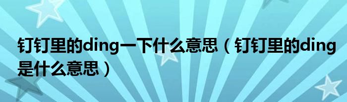 大家好,跳跳为你解答以上问题。钉钉里的ding一下什么意思,钉钉里的ding是什么意思这个问题很多人还不知道,现在让我们一起来看看吧!