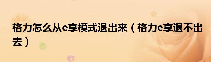 大家好,小叶为你解答以上问题。格力怎么从e享模式退出来,格力e享退不出去这个问题很多人还不知道,现在让我们一起来看看吧!