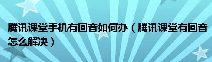 大家好,跳跳为你解答以上问题。腾讯课堂手机有回音如何办,腾讯课堂有回音怎么解决这个问题很多人还不知道,现在让我们一起来看看吧!
