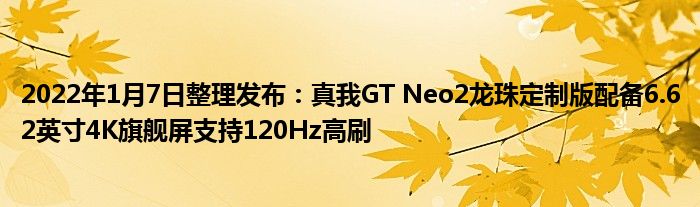 真我GT Neo2龙珠定制版配备6.62英寸4K旗舰屏,支持120Hz高刷、1300nit峰值亮度、100% DCI-P3色域、DC调光、HDR10+等功能,在阳光下也能清晰可见;搭载骁龙870移动平台,主频可达3.2Ghz,辅以双通道UFS 3.1和7GB运存拓展,使CPU、GPU性能提升10%;内置5000mAh大电池,支持65W闪充,36分钟即可充至100%。