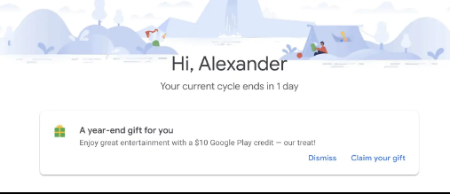 这只是成为GoogleFi客户的众多好处之一。每年,谷歌都会向他们的Fi客户发送一份节日礼物,今年是10美元的GooglePlay积分。这非常有用,因为您可以将其用于应用内购买、一些新电影,甚至一些书籍。您可以进入GoogleFi应用并获得您的GooglePlay积分。或者,您还应该收到一封关于它的电子邮件。您可以从该电子邮件中获得信用。