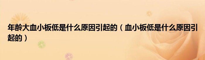 大家好,linda来为大家解答以上的问题。年龄大血小板低是什么原因引起的,血小板低是什么原因引起的很多人还不知道,现在让我们一起来看看吧!