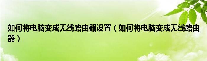 如何将电脑变成无线路由器设置(如何将电脑变成无线路由器)