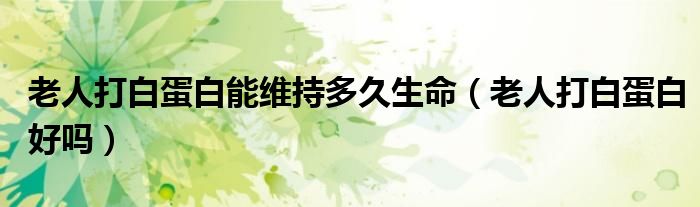 大家好,linda来为大家解答以上的问题。老人打白蛋白能维持多久生命,老人打白蛋白好吗很多人还不知道,现在让我们一起来看看吧!