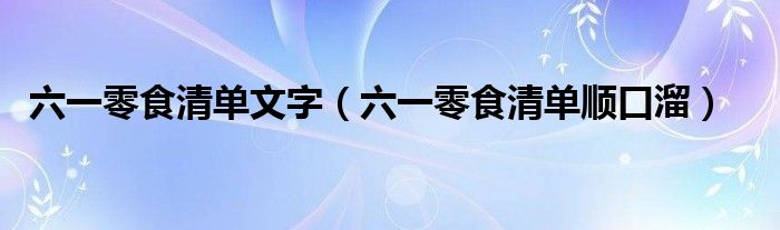 大家好,小晋来为大家解答以下问题,关于六一零食清单文字,六一零食清单顺口溜很多人还不知道,今天让我们一起来看看吧!