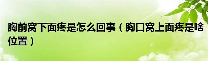 大家好,linda来为大家解答以上的问题。胸前窝下面疼是怎么回事,胸口窝上面疼是啥位置很多人还不知道,现在让我们一起来看看吧!